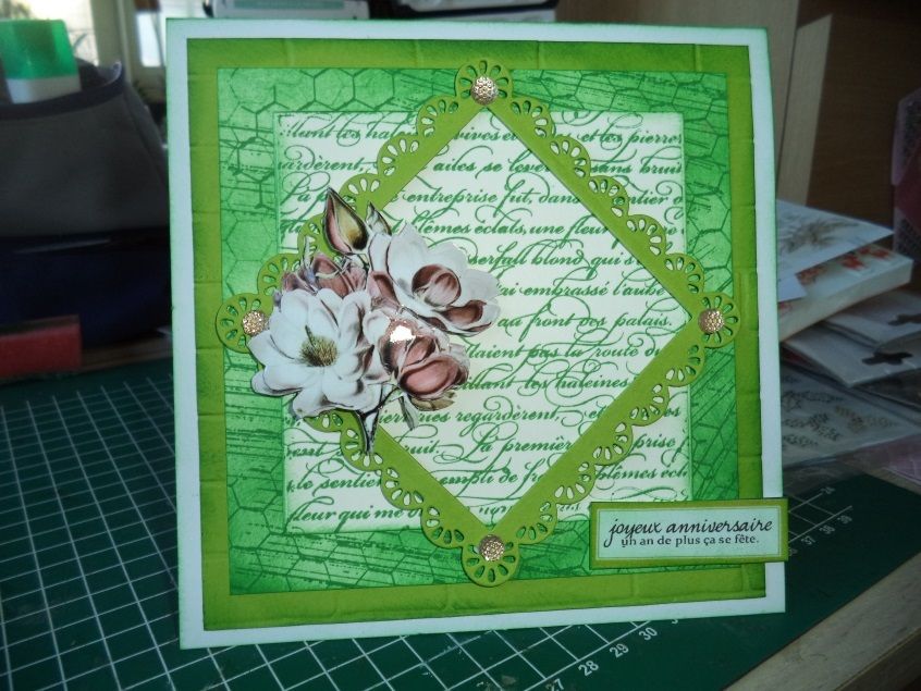 UNE CARTE FAITE POUR MA COUSINE QUI A EU HIER 89 ANS SUR UNMODÈLE VU SUR CARTES CRÉATIVES